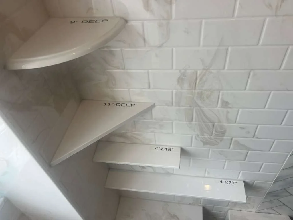 Size can be adjusted to meet your needs, Shown in a 13”x30” in a 32”x36” Shower Space